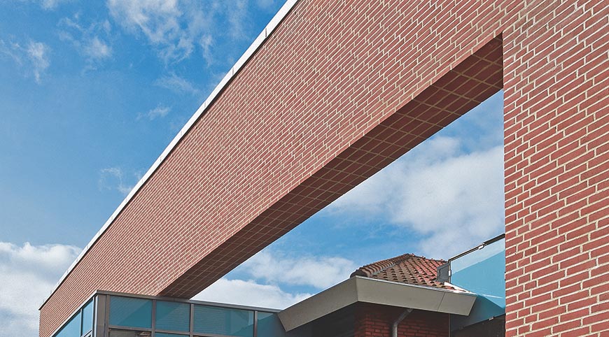Eine der Stärken der vorgefertigten Ziegelelemente von Carlsberg Bjælker™ ist, dass unsere Produkte einen einzigartig hohen Ziegelanteil aufweisen. Wir bewahren mindestens 80 % des Volumens der Ziegel und wir vermeiden die Verwendung von Beton und Stahlkernen. Dadurch wird gewährleistet, dass die Ziegel¬konstruktion auf natürliche Weise mit der restlichen Ziegelkonstruktion zusammenarbeitet, ohne dass die Bildung von Rissen oder ein Abblättern riskiert werden. Dies bedeutet auch, dass unsere Elemente elegante Lösungen mit größerer architektonischer Freiheit und weniger Dehnungsfugen ermöglichen.