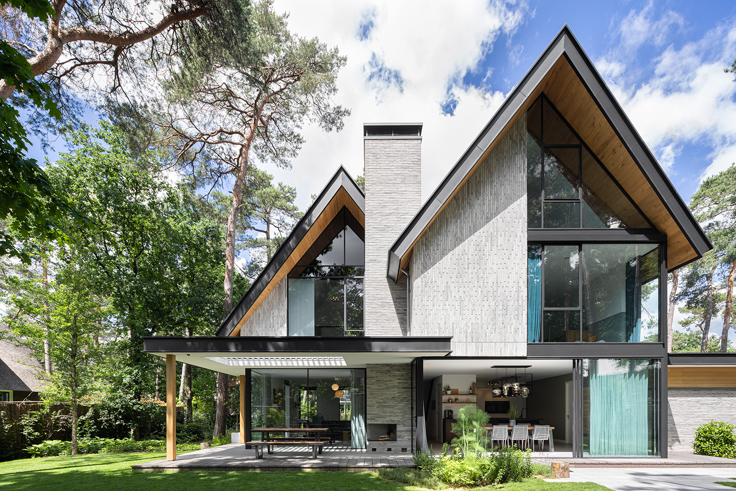 In den bewaldeten Umgebungen von Zeist zu leben, ist für viele Menschen ein Traum - ein Traum, der tatsächlich für einige in Erfüllung geht. Im Jahr 2018 wurden wir gebeten, ein Wohnhaus auf einem selbst gebauten Grundstück in einer der schönsten naturnahen Wohngegenden des Landes zu entwerfen, in der der Wald buchstäblich bis zur Haustür reicht. Der Wunsch der Kunden war ein modernes, geräumiges Familienhaus, das mit der Natur verbunden ist, in dem die bewaldete Umgebung auch drinnen stark spürbar ist. Das Haus musste mit allen modernen Annehmlichkeiten ausgestattet sein. Darüber hinaus wünschten sie sich eine großzügige offene Küche, ein Homeoffice mit eigenem Eingang, eine ausreichende Anzahl von Schlafzimmern und vor allem viel Licht und Raum.